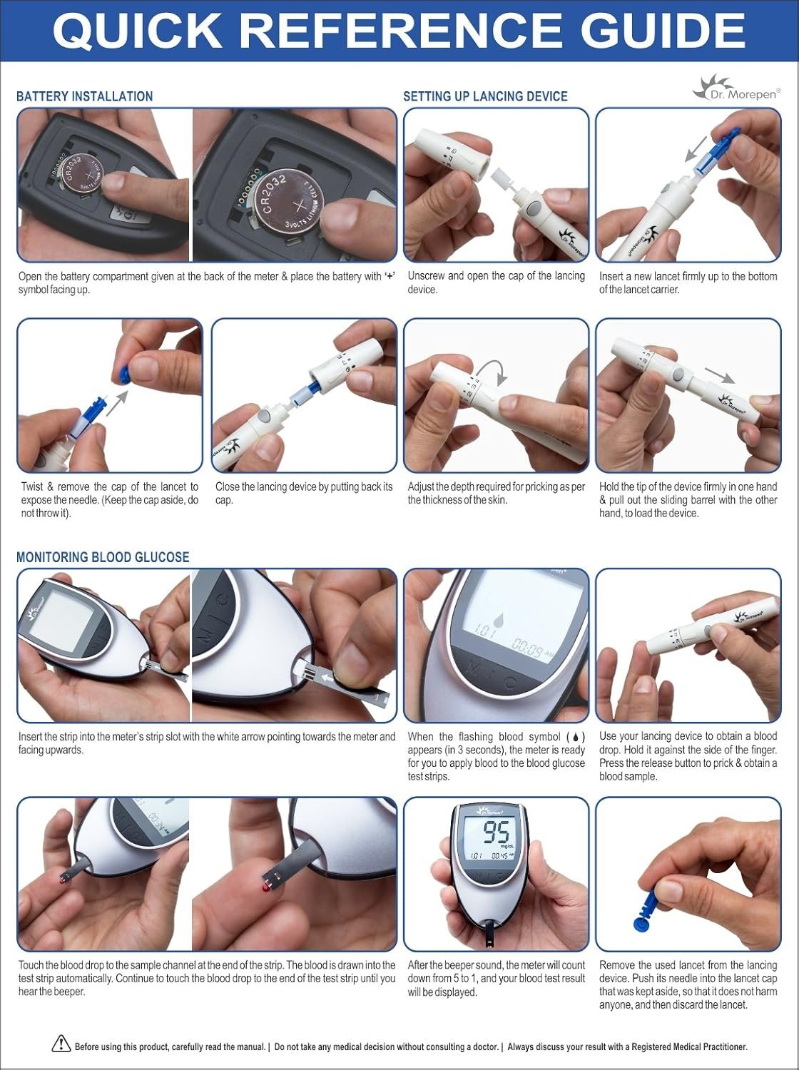 If you have the need to check your blood glucose levels frequently, then it is time you invest in a simple device that will make the process practically effortless. The best choice for you is the Dr. Morepen Gluco One BG03 Glucometer (25 Free Test Strips). This device requires only a small amount of your blood sample (0.5 µl) to test your sugar levels. The advanced bio-sensor based technology will make sure the results are accurate as well as quick.
